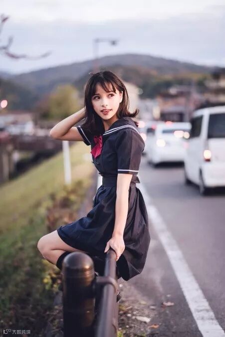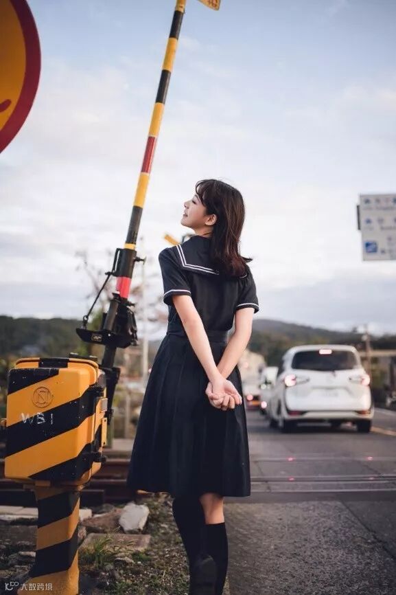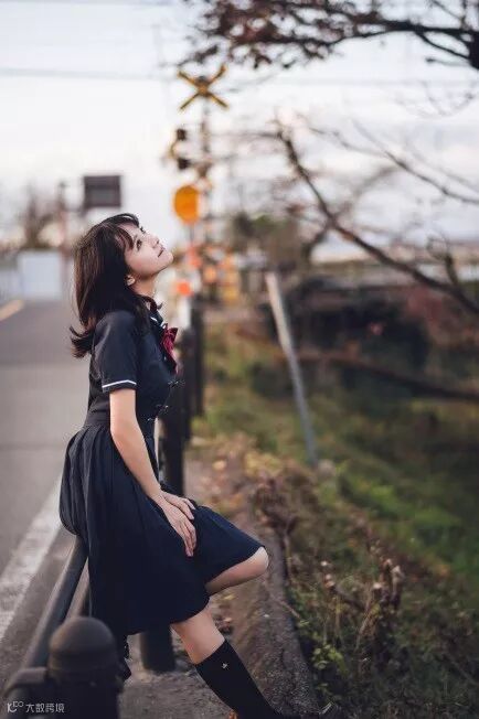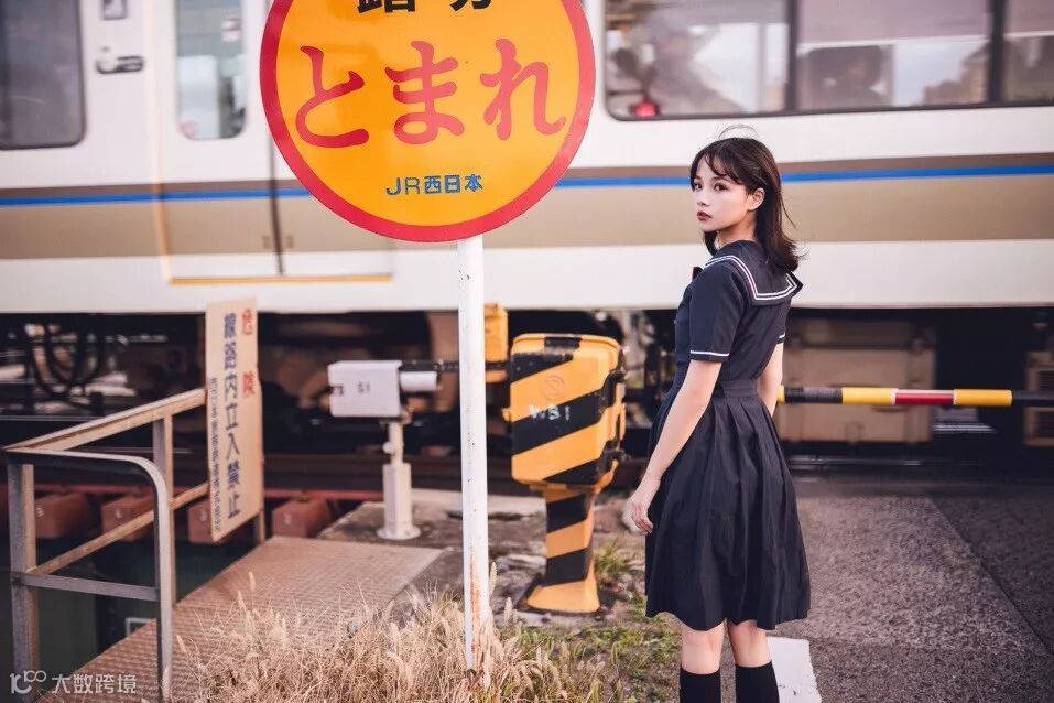在日本拍照,当然铁道要素也是需要充分利用的。铁路道口的色彩丰富,可以与人像充分配合。但是需要注意,不要进入铁轨范围,在铁轨上行走,可能会引起危险的。