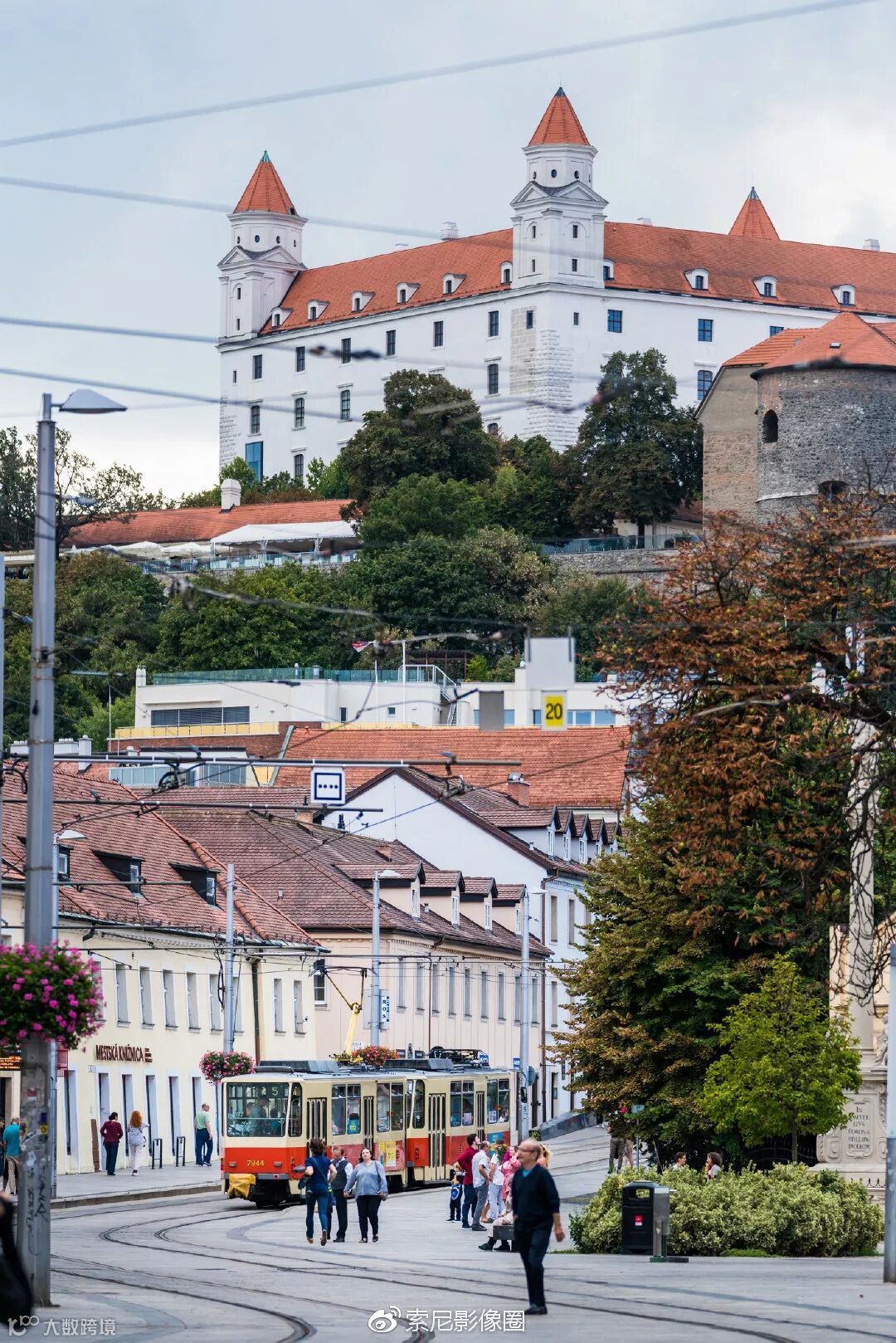 城堡老城区加上有轨电车,貌似这也是布拉迪斯拉发的一个经典拍摄机位,当然不能错过,找到这个角度,需要做的就是等一辆有轨电车驶入画面。