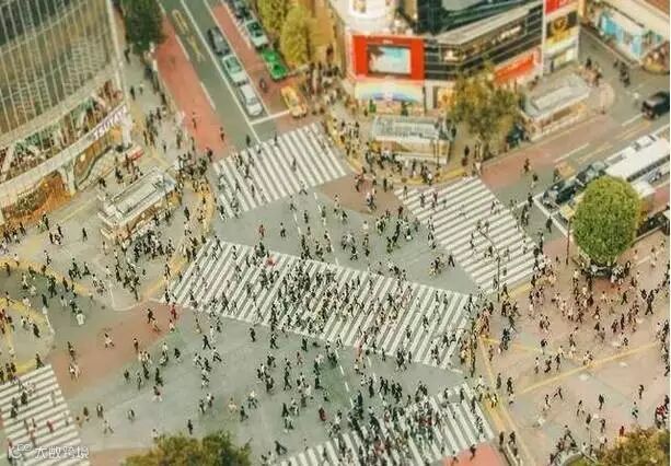 不要离你要拍的目标景物、建筑太近。除了模型本来就很微小这项考虑之外,我们还要考虑景深因素。因为小模型效果必然有很浅的景深,而我们当然不希望我们的目标模糊,因此站远点,望多点,利用浅景深突出主体。一定要选择一个相对大的场景,什么是相对大的呢,例如一个人满为患的十字路口,或者汽车繁多的停车场,这都很好拍出“小人国”的效果。
