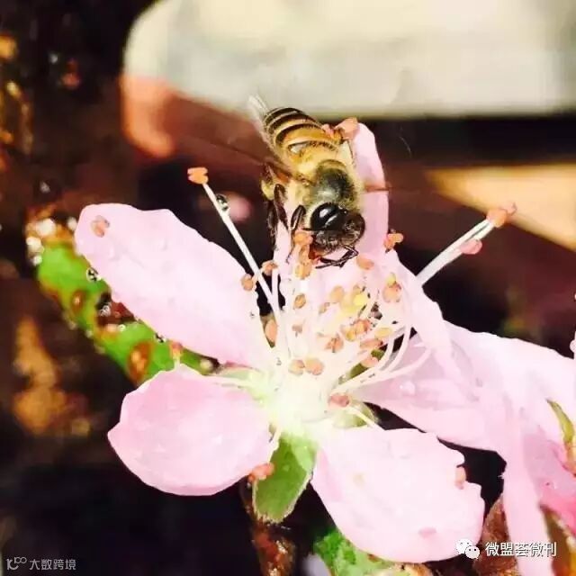 花朵开了,会有许多采花粉的蜜蜂,怎么才能捕捉到采花的蜜蜂?一般有两个方法拍摄,一是靠近拍摄,利用浅景深效果虚化背景,突出蜜蜂采花瞬间。这个方法好处是对焦速度不至于太慢而无法抓到蜜蜂,不足在于,浅景深效果有限,背景虚化不足。二是添加外置微距镜头拍摄,能够获得足够的浅景深效果突出蜜蜂,但微距镜头会导致对焦速度大大降低,可能很长时间都抓不到蜜蜂的采花瞬间,这个方法需要拍摄者足够的耐心。