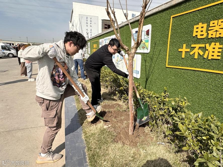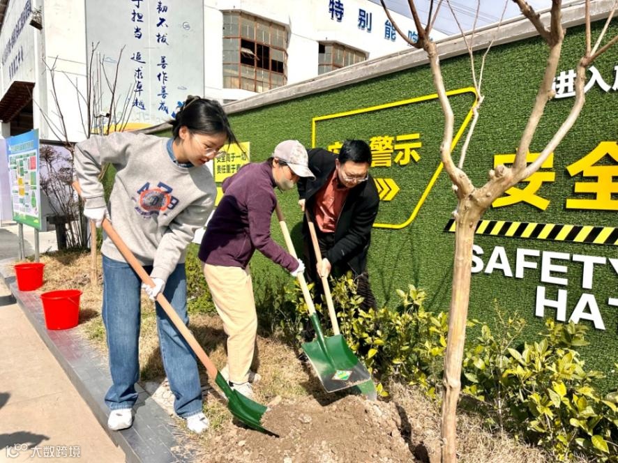 由建管公司党委委员、纪委书记、工会主席于萍带队,一行十余人的团队踩着春光来到了杨高北路2标项管部。团队成员热情高涨、兴致勃勃,携带种植树苗、花草及种植工具抵达目的地后,立即投入到植树活动中。大家4人一组领取工具,扶苗培土,种下花草和树苗,各个小组分工有序,配合默契,充分发扬了团结、互助、友爱的精神。