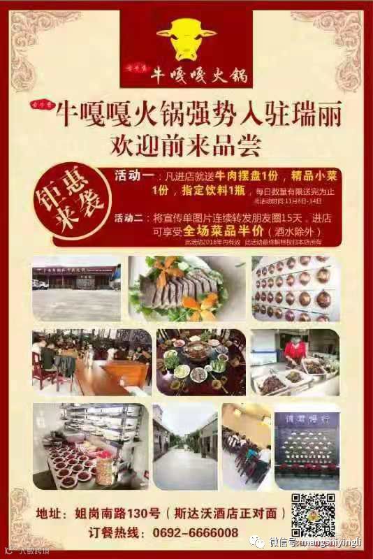 地址:瑞丽市姐岗南路牛嘎嘎铜瓢牛肉火锅(沙坝羊肉旁)