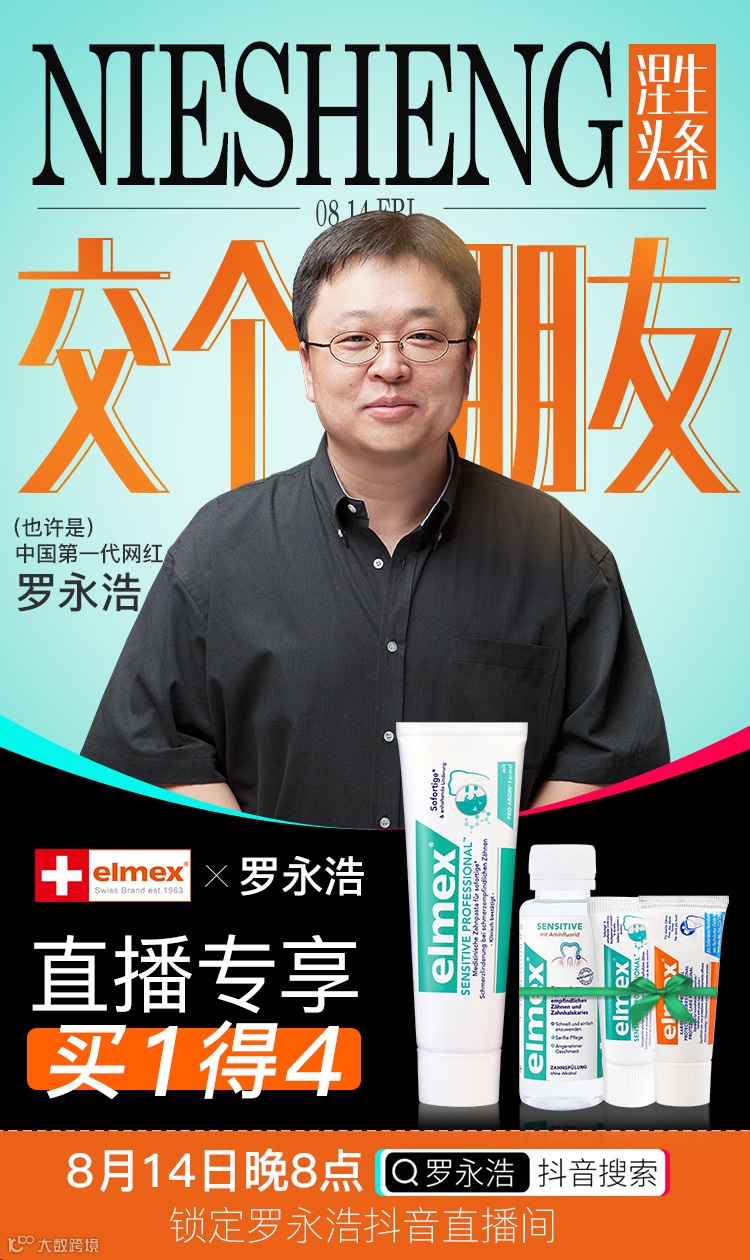 导读:和老朋友一起交新朋友啦~~今天(8月14日)晚上20:00elmex 抗敏牙膏携手罗永浩一起和大家送福利~~