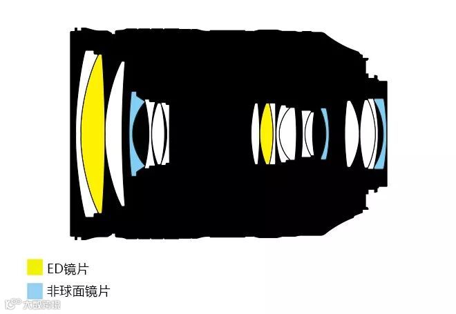 镜头配备2片低色散(ED)镜片和3片非球面镜片,以求在大变焦比下也可保证光学成像效果。