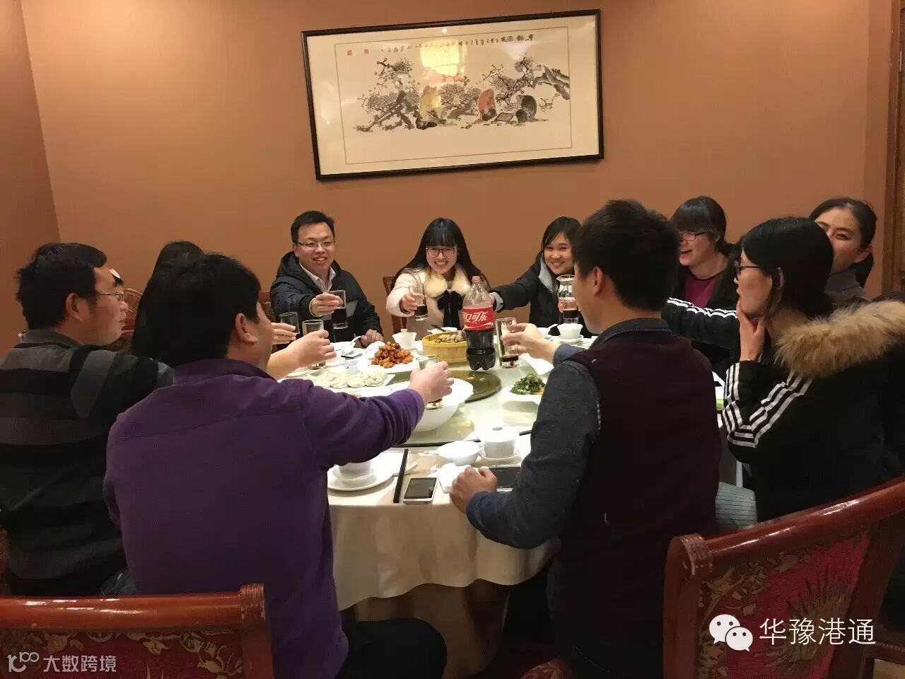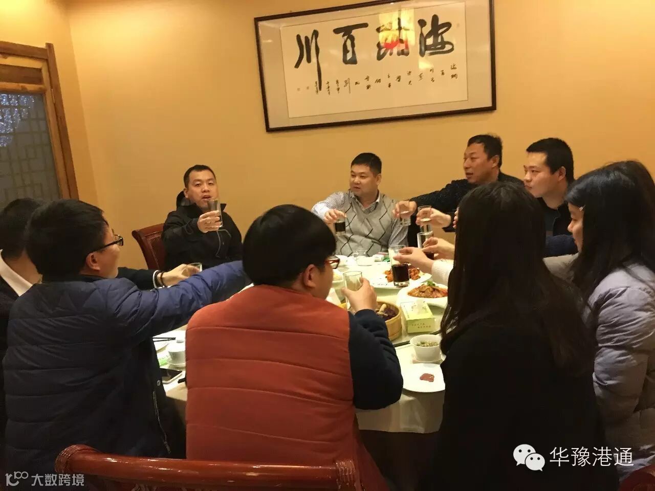 会议结束后大家一起聚餐,举杯欢庆预祝华豫港通在新的一年里越来越好!