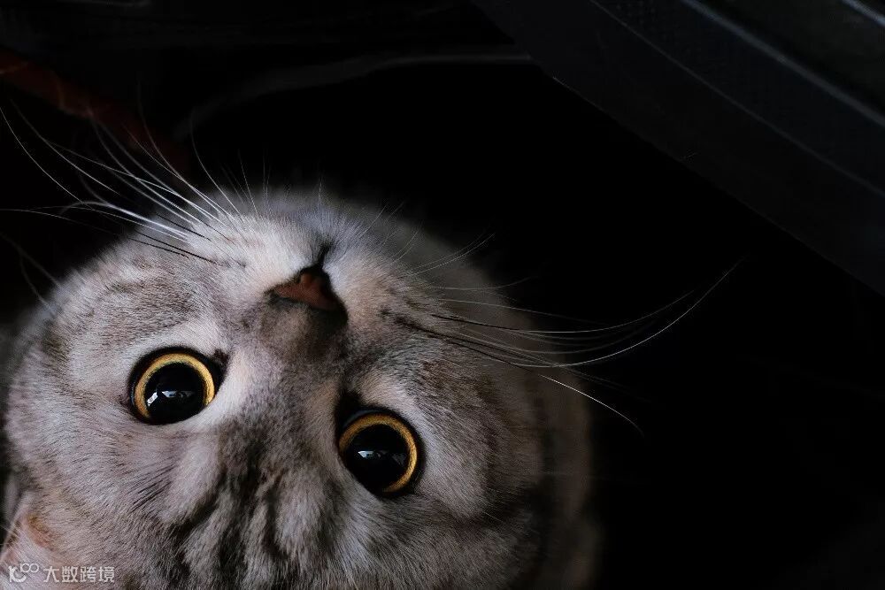 猫咪的大眼睛盯着相机的时候,显得格外萌。猫咪的瞳孔和镜头的光圈一样,可以控制进光量,当处于暗处之时,猫咪的瞳孔会扩大,这时的大眼萌猫咪拍出来非常好看。不过由于此时环境光比较暗,所以需要我们尽量的开大光圈、提高ISO,以保证暗光拍摄的成功率。
