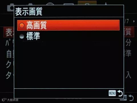 另外,可以将菜单中的取景器的“显示质量”设置为“高质量图像”,这样调整可以将波纹和锯齿抑制到最低限度。从而在取景器上得到更加细腻和自然的图像。