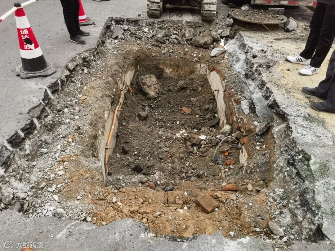 经现场勘查发现,路面塌陷可能由于检查井塌陷等多重因素引起。为确保抢修工作高效有序,项目部迅速调集专业设备及物资,并联合交警部门对塌陷路段进行临时交通管制,引导车辆绕行,避免二次事故发生。