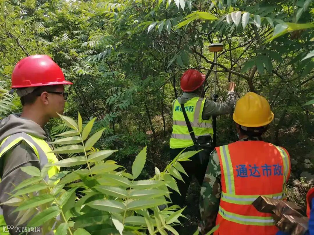 摄影内容:伴山路北邻省委党校,南靠狼猫山公园。为方便群众进出狼猫山公园休闲与健身,同时满足消防车辆通行。对伴山路进行完善提升。图为伴山路施工前测量放线,新建道路范围无建成路,树木茂密,仪器接收信号较为困难。