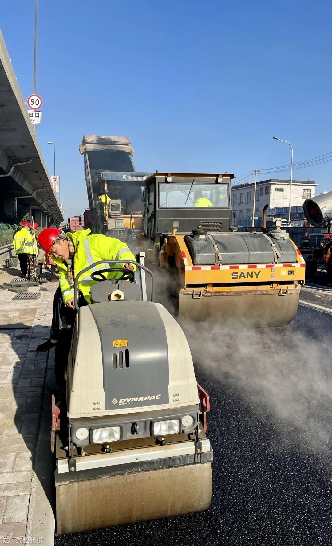 这是济南最冷的一年,从早上7点一直进行沥青摊铺工作的道路项目部的同仁们,转眼间工作已经超过一个对时到凌晨,如果说外面的寒风是刺骨的,那么在他们身边你仿佛置身在暖气间里,充满温暖。