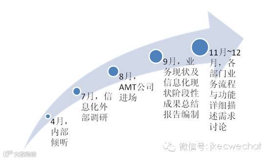 8月普华和蓝凌作为公司的IT供应商进场开展工作,与AMT和公司一起形成4方信息化工作小组,先后共同完成了详细工作计划制定、需求调研、一期要重点实现的二级功能确认和详细三级功能确认。