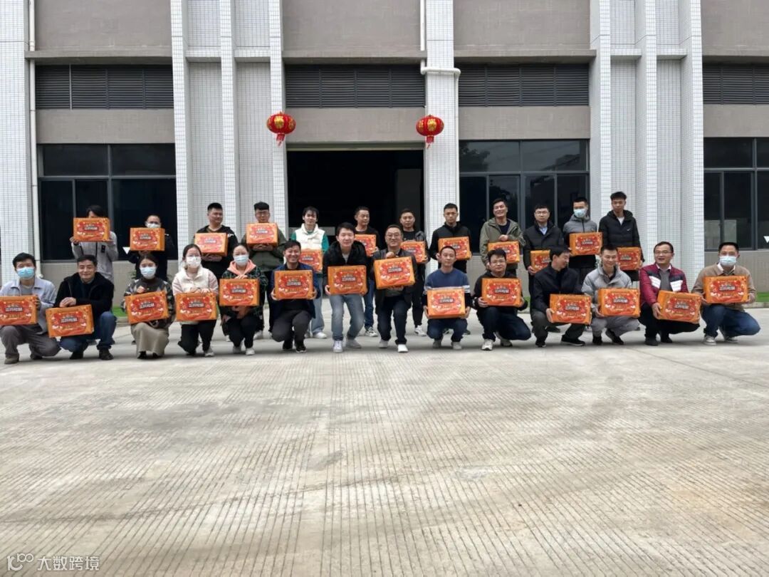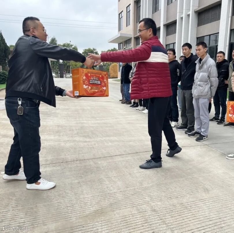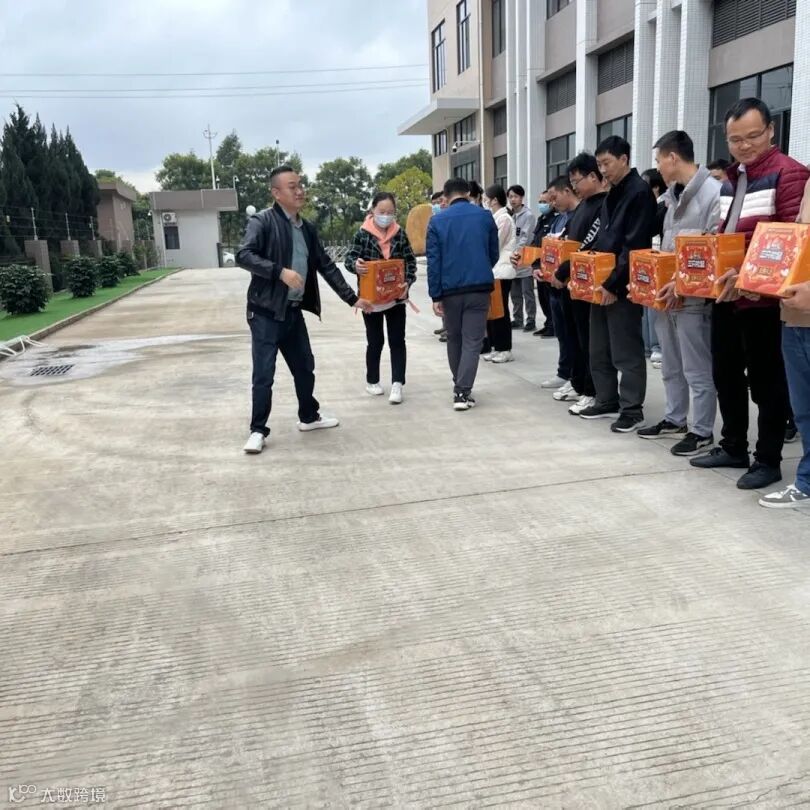 由运营总监谢总、资材总监闻总,为东莞同事发放礼品并送上祝福。