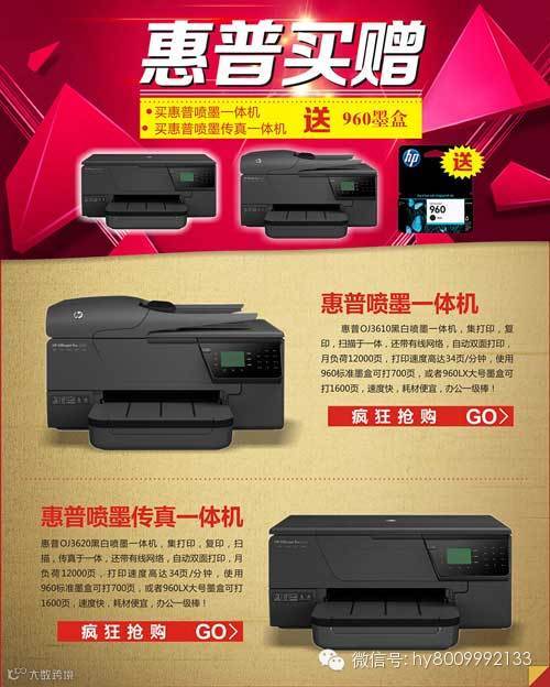 2.买惠普喷墨传真一体机 OJ3620 黑色 单台送960墨盒赠品。
