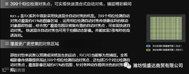 索尼黑卡RX1RM2是RX系列中首款采用快速混合自动对焦的机型。399个相位检测自动对焦点覆盖45%的图像区域,运用相位检测自动对焦传感器优异的移动对象跟踪性能。结合宽广覆盖范围及密集布置的自动对焦点,可实现快速自动对焦。快速混合自动对焦也可用于拍摄状态影像。