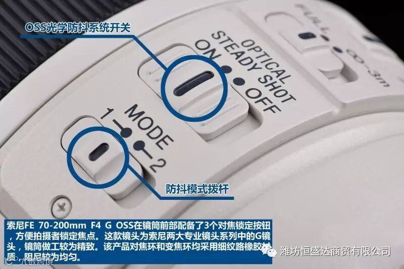 当然,索尼70-200F4在缩小体积提升便携的同时,它的功能却非常完善。用过索尼A卡口单电70-200F2.8镜头的朋友,或者用过其他家70-200单反镜头的朋友都会知道镜身上这些功能按键吧。没错,索尼70-200F4全副微单镜头同样也具备这些功能,而且一个都不少。
