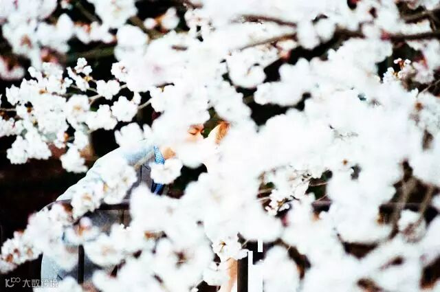 日本春天樱花盛开的时候刻意以大量樱花挡著主角,只看见男主角的眼睛出营造一种浪漫的感觉。
