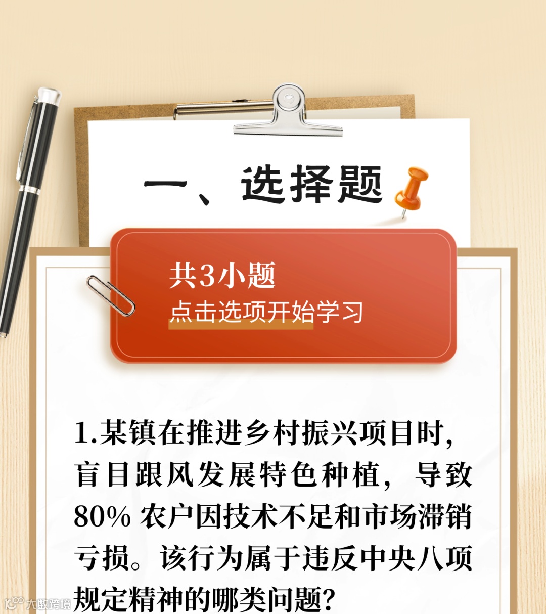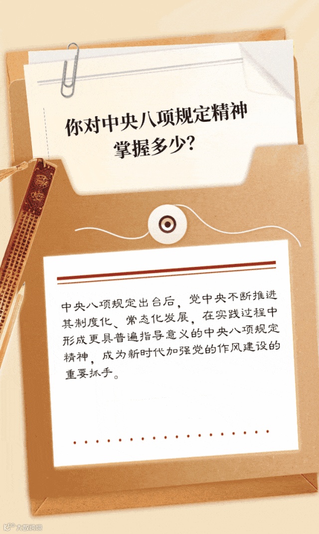 深刻理解本次深入贯彻中央八项规定精神学习教育的重要意义,对于增强思想自觉和行动自觉,推进作风建设常态化长效化,以作风建设新成效为进一步全面深化改革、推进中国式现代化提供有力保障,具有十分重要的意义。经过一段时间的学习,快来看看你对中央八项规定精神究竟掌握了多少吧!