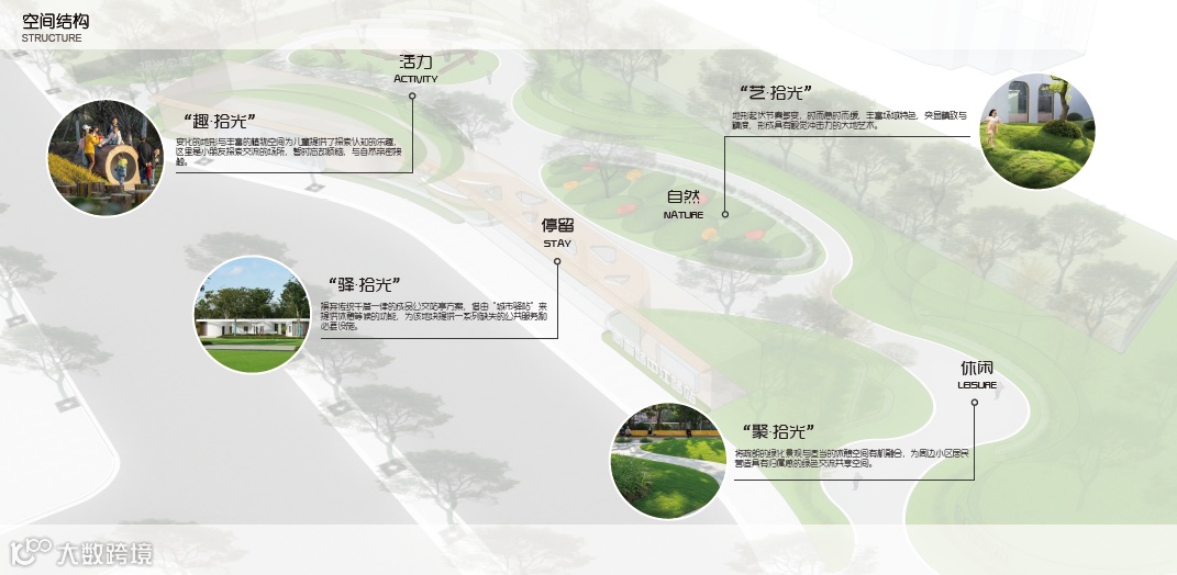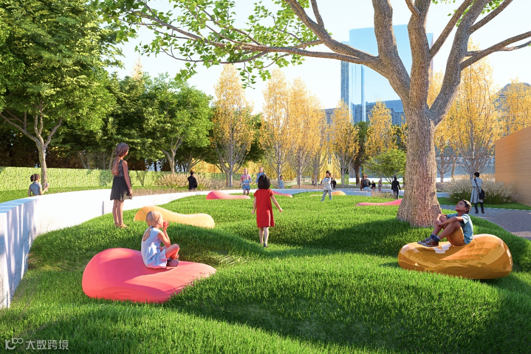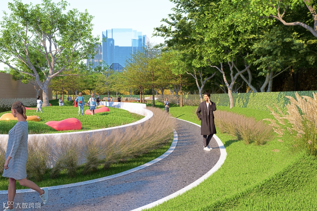 方案注重弱“市政感”而强“社区感”,后端社区公园在驿站的守护下,安全感得到充分保障。公园内部设施与绿化均采用更自然的材料与形式,避免元素过多过杂,通过流畅的路线设计,使游客能随心而行、随意而停。
