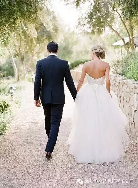和新郎牵着手的背影,象征着新生活的开始,而这一好时机也非常适合炫耀一件绝美礼服与美背!