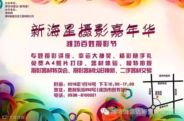 016年1月10号,新海星为潍坊地区的广大摄影爱好者带来一场摄影嘉年华~!现场惊喜多多,欢迎广大摄影爱好者参加~!