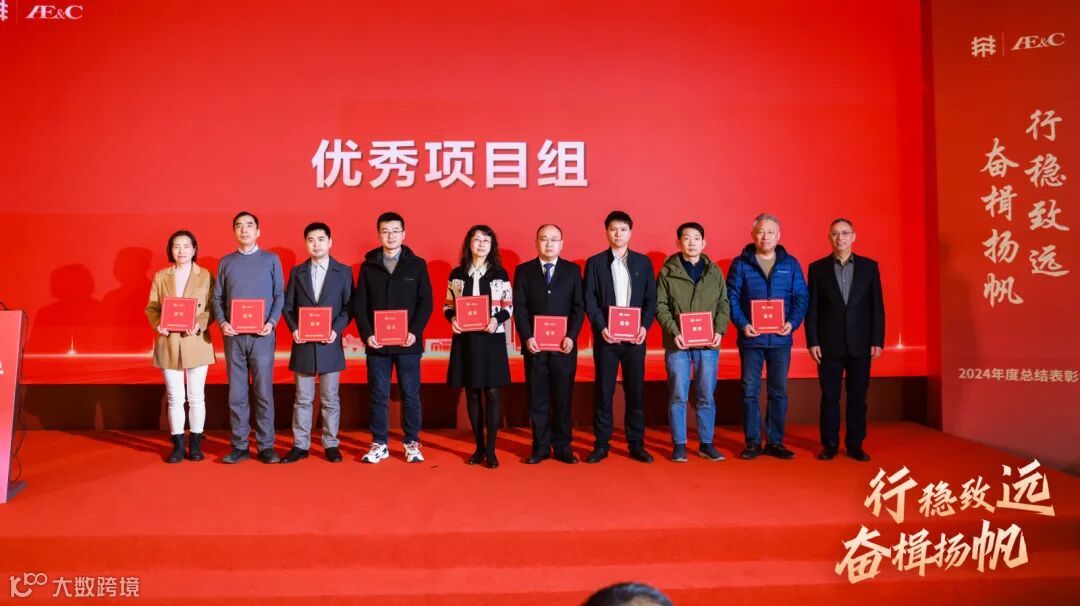 杨俊杰揭晓了2024年度公司先进集体、优秀项目组、专项突破奖名单,桂武向上述获奖者颁奖。