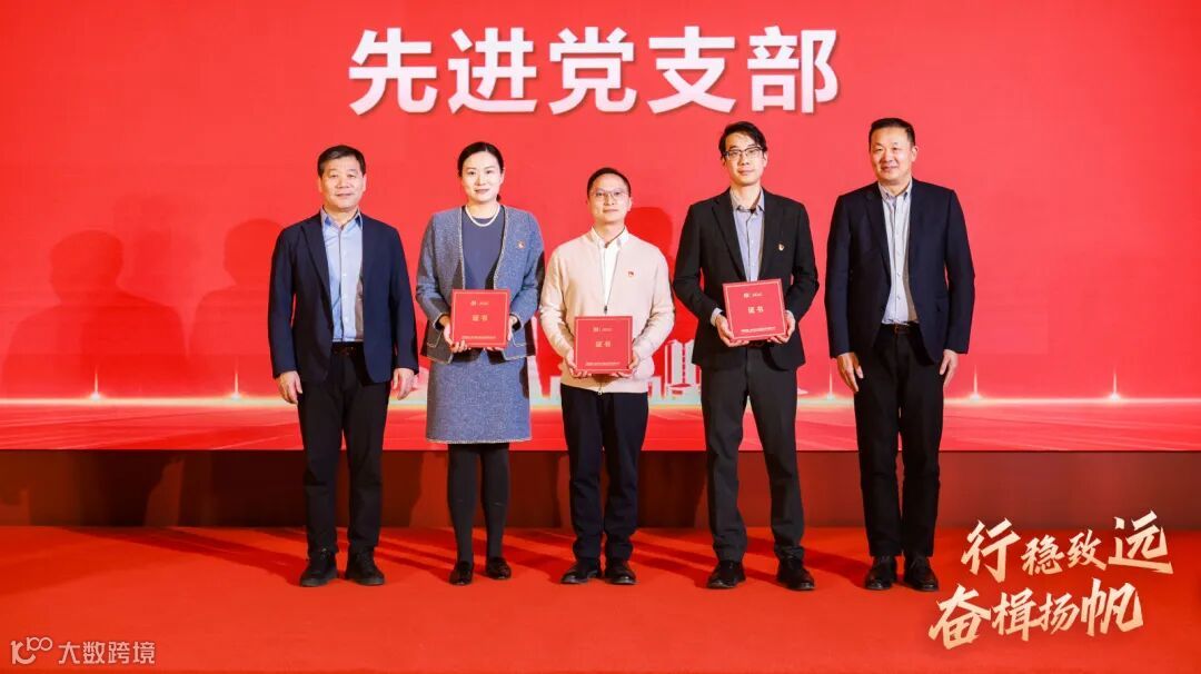 陈文君宣读了2024年度公司先进党支部、优秀党员和优秀党务工作者的表彰名单,过震文、倪飞共同为获奖代表颁奖。
