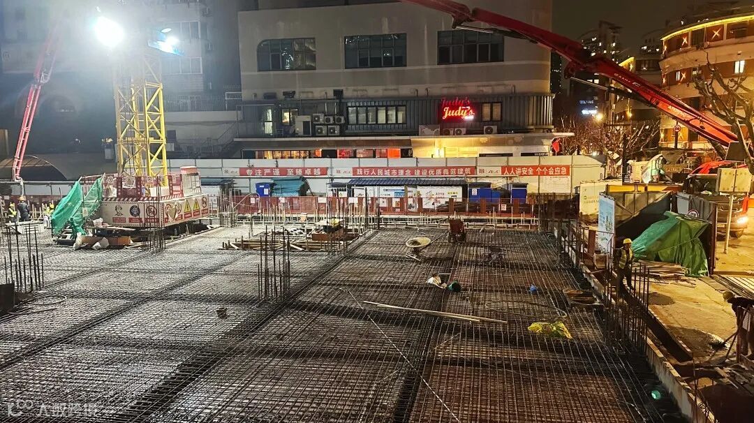 项目自2021年12月5日开工后,整个实施过程受到了集团及公司领导的大力关心与支持。项目施工团队克服了场地狭小、交通不便、作业时间受限等各种困难,合理统筹安排机械、材料进场,严格按方案和图纸施工,强化质量安全管理,确保项目各项工序均处于受控状态。2024年春节后,项目于2月19日全面复工, 3月5日完成首道支撑及栈桥的拆除及清理工作, 3月24日完成负一层的结构施工,比2023年底计划提前了12天。施工期间,周边建筑沉降均处于可控状态,近期连续几周数据已经稳定。