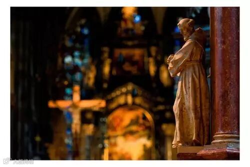 图中采用广角镜头靠近雕塑拍摄,背景虚化程度不够,依然能看到背景中的元素;此时,摄影师退后一些,改用长焦镜头拍摄,画面的景深立刻浅了很多。而左图,采用广角镜头拍摄室内大场景,则无法简单调整焦距来控制景深。