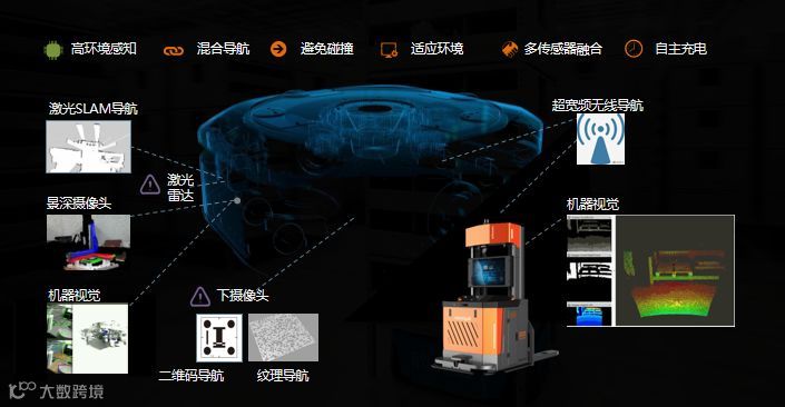 在传感器融合方面,快仓进行软件算法优化和硬件嵌入式化。以实现机器人在多个传感器范围内穿梭运行时,其对数据的融合是自然过渡,并能够满足传感器特性要求。