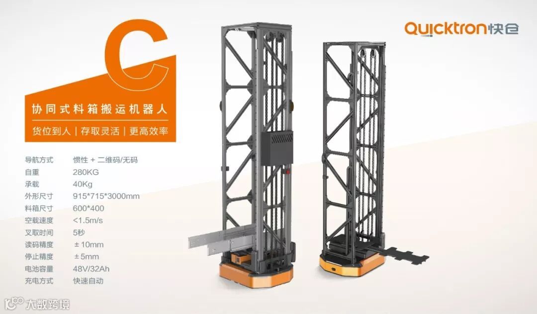 与此同时,2019年快仓又研发出了存取一体式料箱机器人。如果把紧凑型料箱机器人比作倚天剑的话,这款存取一体式料箱机器人就是屠龙刀。其自带的存储功能,极大地提高了单料箱的平均存取效率。用在料箱的搬运、转运场合再合适不过了。