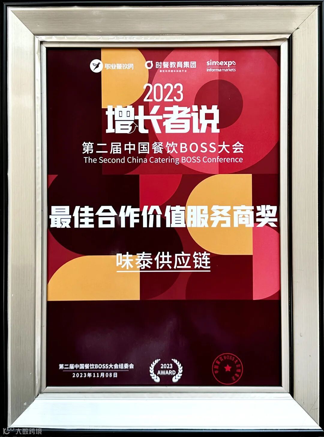 味泰供应链凭借在餐饮供应链方面的专业运营和优质服务,在此次大会中荣获“最具合作价值服务商奖”,据悉,本次颁发的所有奖项,都是围绕实力、能力、毅力等多个维度综合评选出来的。奖项,既有“分量”,又有“重量”,再次彰显了味泰供应链在餐饮供应链领域的巨大的价值和影响力。