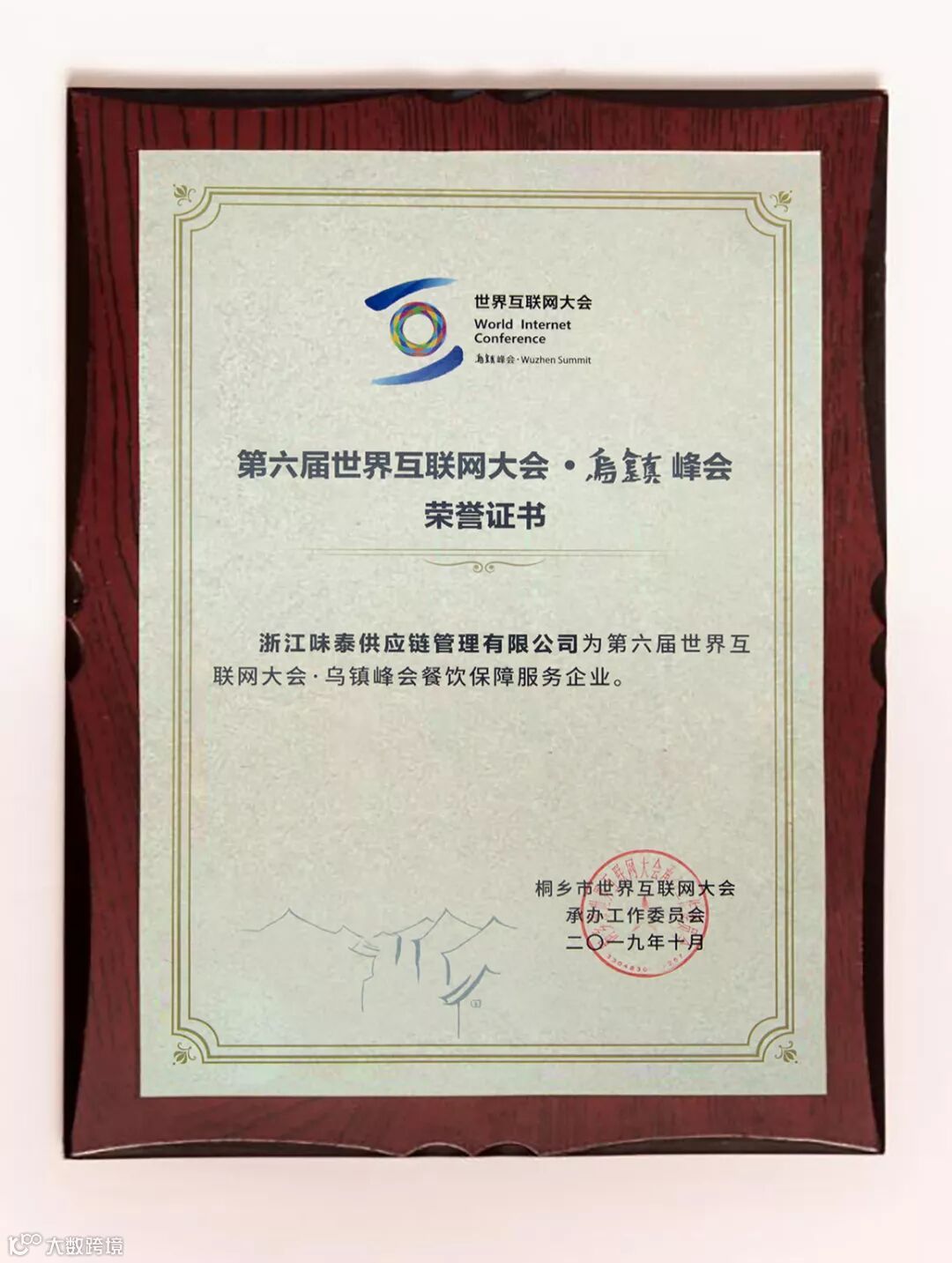 前两天,味泰供应链收到了来自世界互联网大会承办工作委员会授予的荣誉证书。