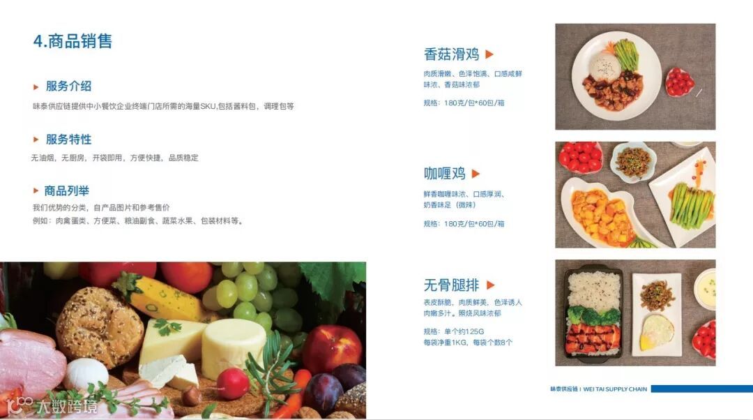 味泰供应链集原材料采购、产品研发、中央厨房运营、仓配物流、市场营销于一体,致力于为中小餐饮企业提供供应链解决方案。