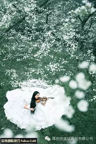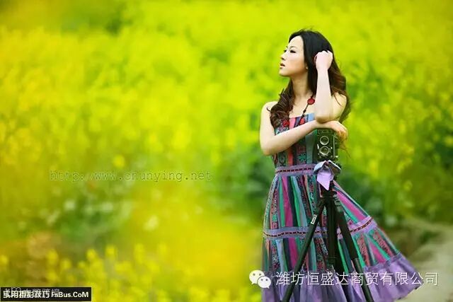 拍摄油菜花、向日葵、芦苇这类较高的花卉,模特立于花丛中,可能会被淹没或只能露出少部分的身体,摄影师亦因为花卉的遮挡而使拍摄工作变得束手束脚,无法从不同的角度取景,携带一两个便携式的小梯子变得非常有必要。有了梯子,摄影师可由上往下拍,让构图变得更加灵活多样,较高的机位,还可以拍摄到更多的场景,而模特也可以站立于梯子上,露出更多的躯体。