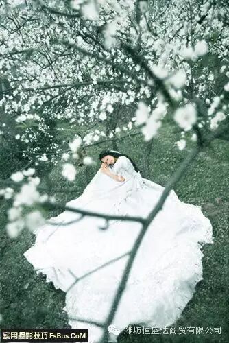前景运用得当,会让作品变得与众不同,而且,由于前景的花卉距离镜头较近,根据景深原理,虚化尤为厉害,散焦效果尤其柔美,容易营造出浪漫、唯美的气氛。在使用广角镜头时,由于透视畸变的原因,人物下肢容易显得过粗过长,前景也可起适当的“遮丑”作用。