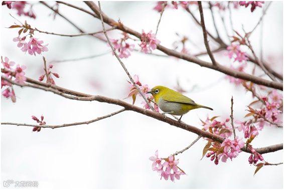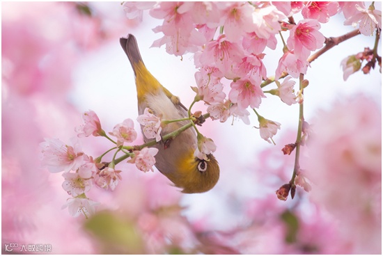密不透风的构图方式,在四周樱花的衬托下,小鸟当作被摄体更突出。