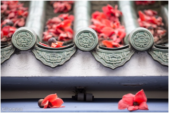 木棉花在凋零之后,掷地有声,装饰了岭南建筑的一角。
