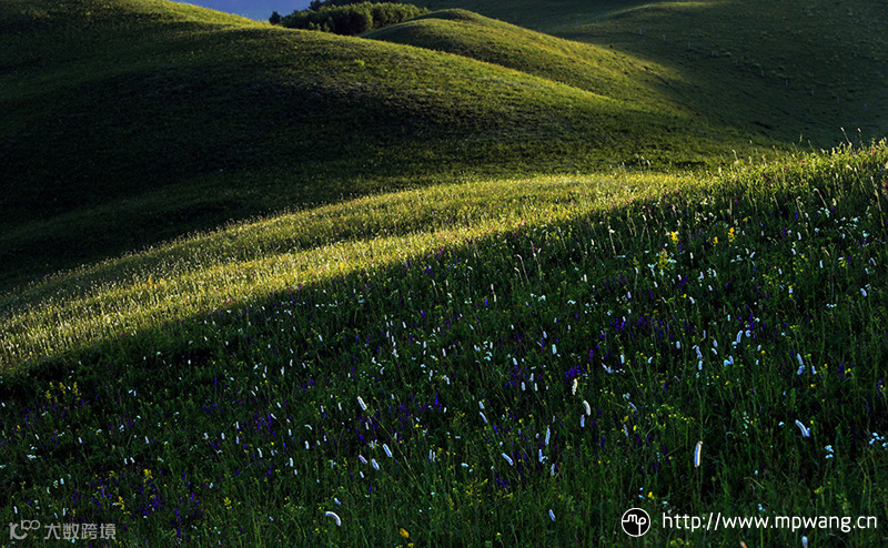 七月的坝上,一片神奇的土地。辽阔的大地碧草连天,缓缓的丘陵变换着柔和的曲线,白云流淌,天空湛蓝,美在辽阔中流动,静在悠远之外。这里平坦无垠的草原更显灵秀,碧草如翠的绿地尤为灿烂,花树清秀,野芳琼香,任何华丽的语言在它面前都变得苍白。满目绿源奔腾着涌来,犹如大海的波涛,苍凉壮阔却蔚然壮观。环顾四野,灿若繁星的野花,灵动绽放,妩媚妖娆。这里是摄影人的天堂,明艳的色彩,自然的搭配,给人以无尽的遐想,把捕捉到的美丽收进行囊。