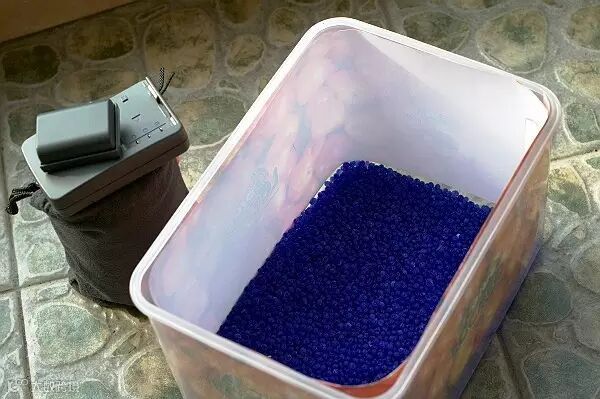 使用防潮箱密封我们的摄影器材时,切记不要使用樟脑丸,因它散发出的气体含有有毒物质,会损害镜片镀膜及胶片。如果想更省事的话还可以购买包装成包的蓝色防潮珠,它是摄影发烧友最常用的防潮工具,加上它的售价便宜及可循环再用,可以说是防潮箱的最佳拍当,最重要的是它以Silica Gel硅胶制造,不会排出有毒和腐蚀性气体,用作相机防潮来讲就再合适不过了。