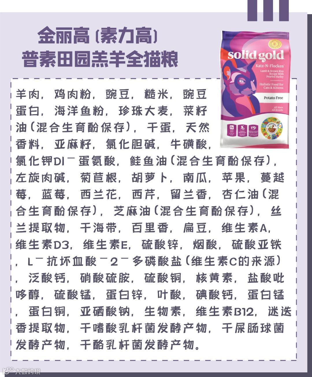 可以看到,除羊肉外,还添加了鸡肉粉、海洋鱼粉、干蛋等动物性成分,它们提供丰富的蛋白质和赖氨酸等必需氨基酸,