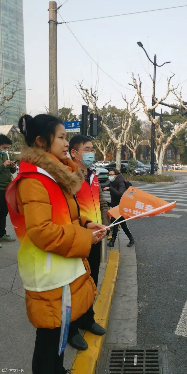 在志愿服务的最后,作为每年服务社区的保留节目,志愿者们主动站在了石门二路与北京西路交叉口,承担起了道路交通志愿者的责任,为城市文明贡献一份绵薄之力。