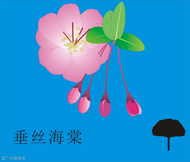 常见的用于观赏的海棠一般都是重瓣种类,如株型较小的垂丝海棠(M.halliana),以及株型较大的西府海棠(M.×micromalus)。垂丝海棠顾名思义,具有长长的下垂丝状花梗,因此花一般倒垂。