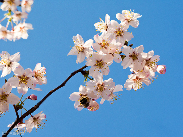 早樱通常花先叶后,钟花樱桃、迎春樱桃都属于早樱,除此之外国内常见栽培的还有花大色白的大叶早樱(C. subhirtella)及其著名的变种垂枝樱花(C. subhirtellavar. pendula),它的花萼筒部膨大成球形,雄蕊较短;更为常见栽培的是以“染井吉野”这个名字享誉全球的东京樱花(C. yedoensis),它的萼筒较细略膨大且有毛,花色一般是白色或很浅的淡粉色,开花时叶芽刚刚开始生长。与东京樱花十分相似的是在国内也有分的山樱花(C. serrulata),与染井吉野的区别在于花一般为纯白色、萼筒无毛几乎不膨大、花叶同时生长。