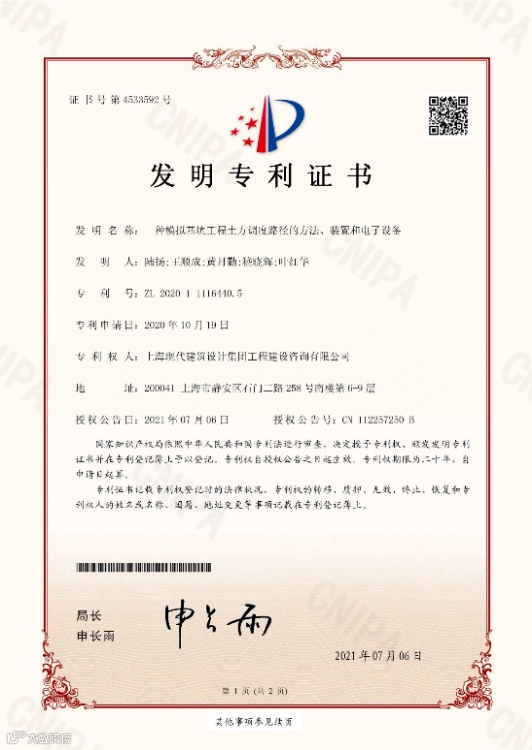 目前,由建设咨询申报的课题研究已通过上海市住建委科研项目验收,形成了相应土方平衡问题计算软件,并取得了发明专利三项和软件著作权一项,未来将逐步在业内其他土方工程项目中进行推广应用。