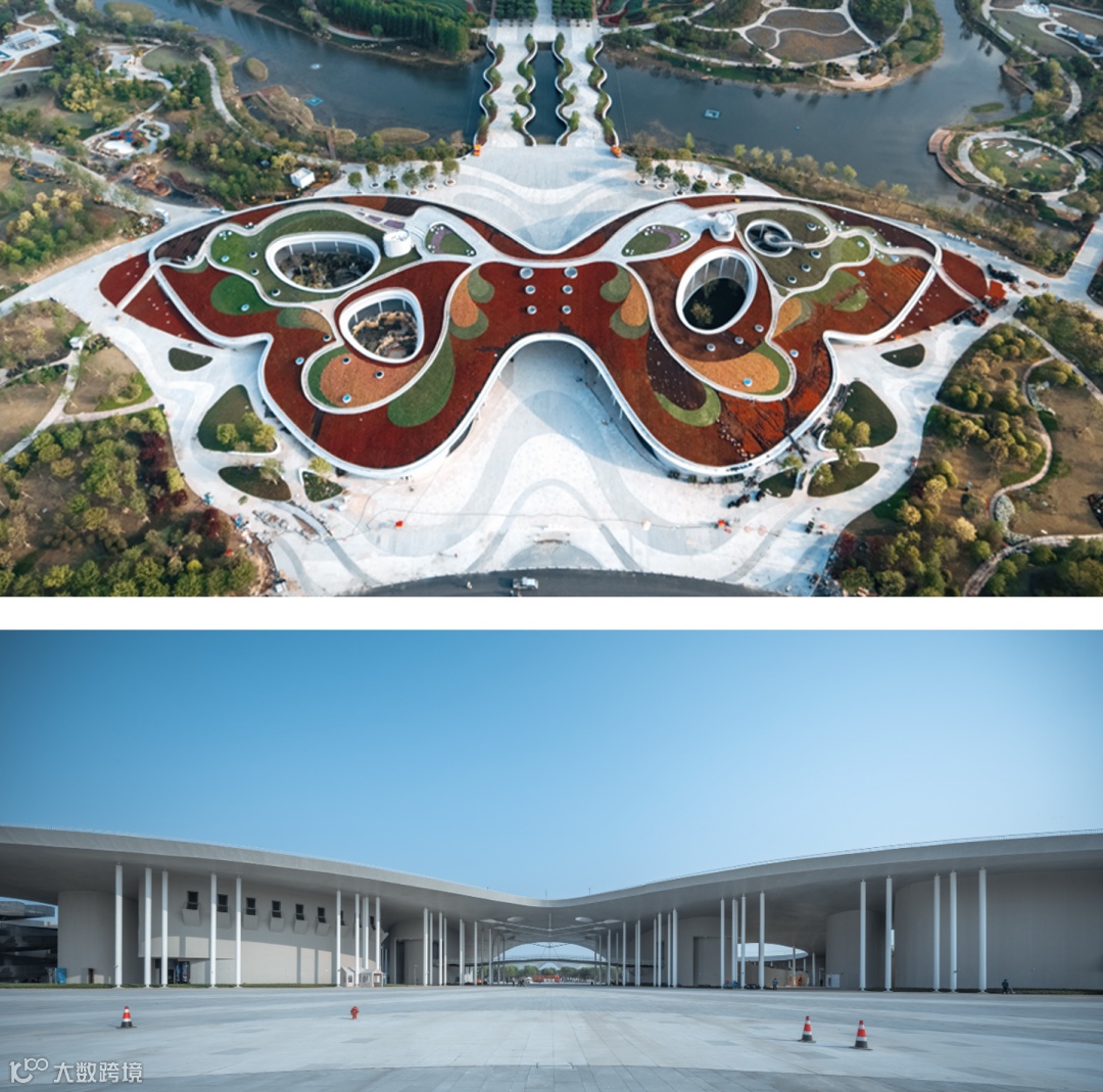 竹藤馆占地面积940㎡,高14.5m,通过多个套叠的异形曲线形成具有一个缺口的竹茧形态,呼应破茧成蝶的寓意。