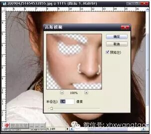 8.在上层皮肤上,用特殊模糊去斑,用高斯模糊柔化(图九、图十)。