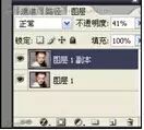 9.调整被柔化皮肤层的,不透明度为80-90%,显露下层毛孔,同时调整 色阶 减小皮肤层的色差和反差,合并所有图层(图十一、图十二)。