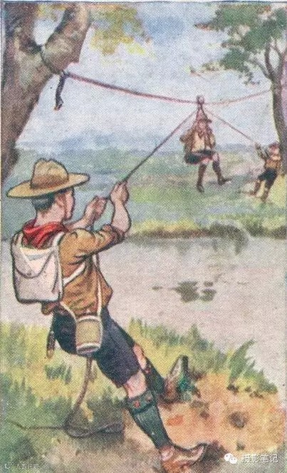 虽然现在不需要这么过河,不过可以了解下,纯娱乐。将绳子结实的系在树上,让一个孩子游到河对岸,将绳子的另一端固定在河这边的树上。将一把椅子用滑轮固定在绳子上,河两边的孩子拉动绳子,推动滑轮把椅子上的孩子带到河这边,这样不会游泳的孩子就可以安全的到达河对岸啦。这类似现在的索道缆车。