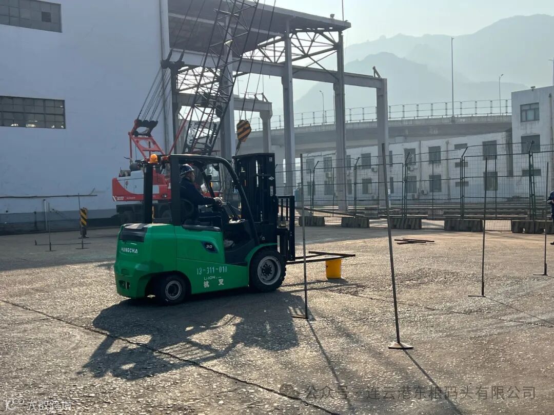 弯障碍通行”、“货盘定位码放”、“堆叠平衡木”三大项目,模拟真实作业环境。参评司机利用工余
