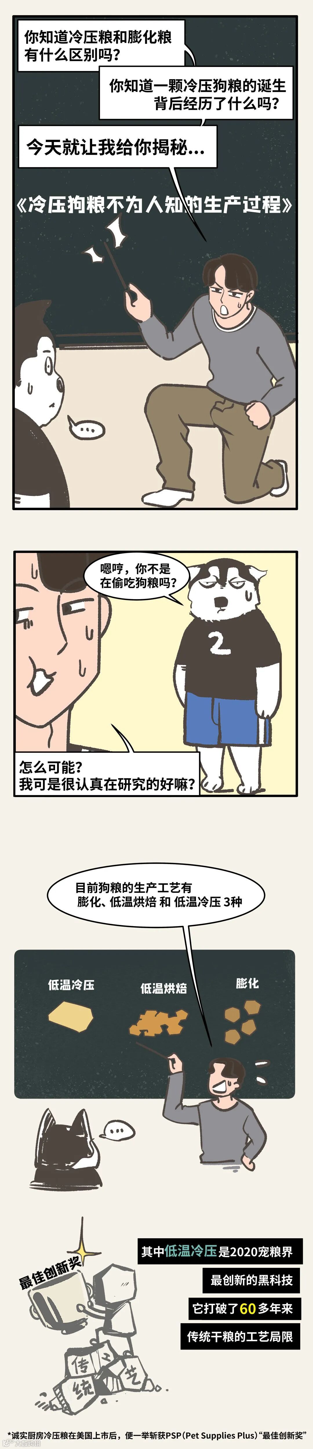 诚实厨房冷压粮,世界上第一款100%人类可食用的狗粮,安全到人都可以吃,玻璃胃也能放心喂。TA不仅能吃,酥脆香气,分分钟会让你爱上狗粮的滋味,和挑食狗子一起纵享嘎嘣脆的美味。